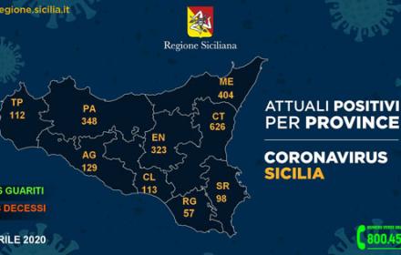 Questi i casi di coronavirus riscontrati nelle varie province dell'Isola, aggiornati alle ore 16 di oggi (lunedì 20 aprile), così come segnalati dalla Regione Siciliana all'Unità di crisi nazionale.